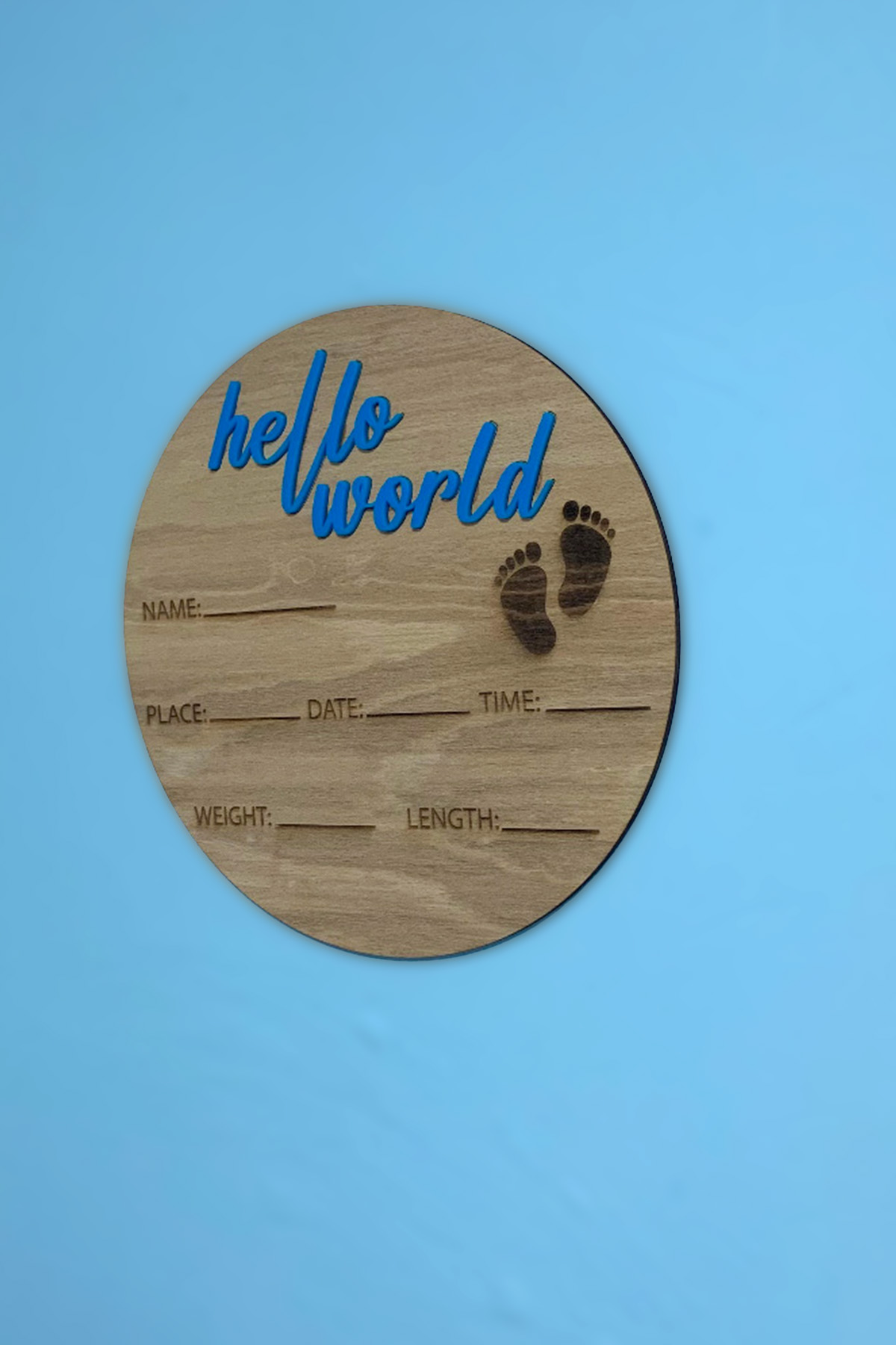 Hello World Bebek Anı Kartı 25 cm çapında Ahşap